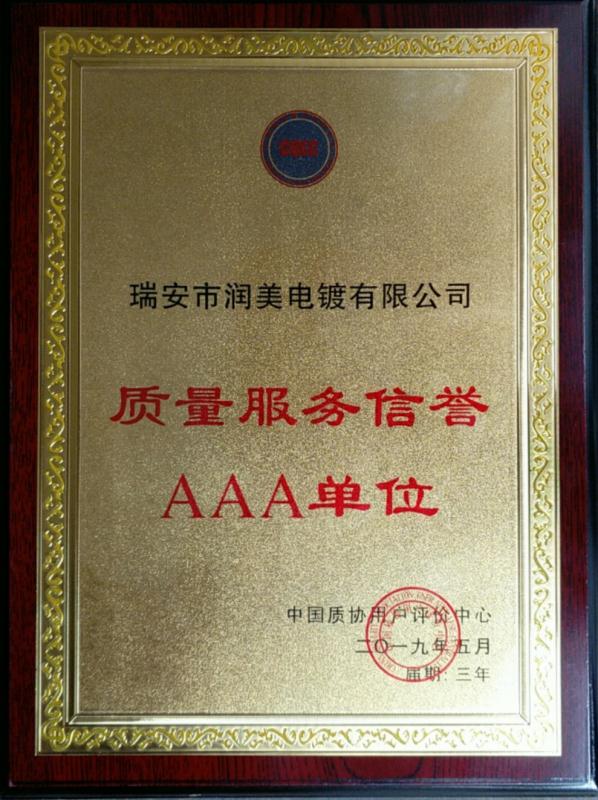 質量服務信譽AAA單位證書